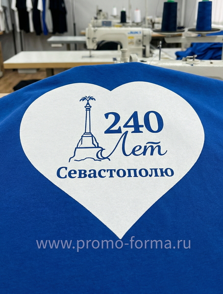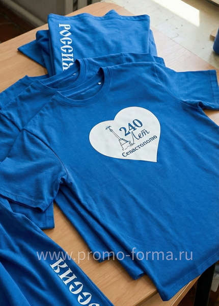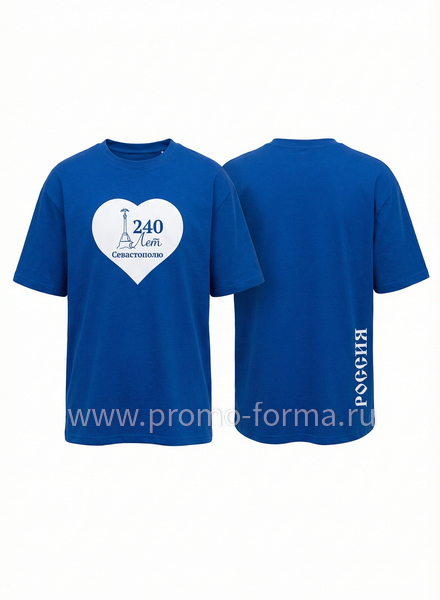 Для выставки "Россия" на ВДНХ наш швейный цех пошил мужские футболки oversize в насыщенном синем цвете с крупным фирменным принтом.