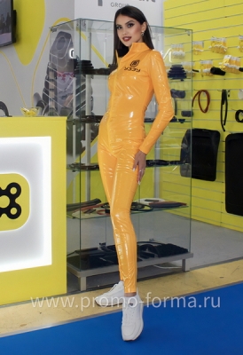 Комбинезон желтый из эко-кожи под латекс с логотипом