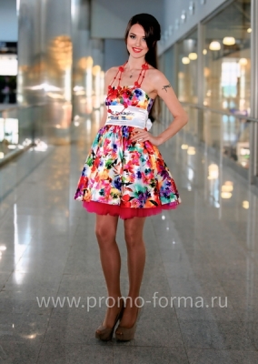Цена высылается по запросу и зависит от количества изделий в партии.Наш швейный цех изготовил это платье для промо моделей на выставку.