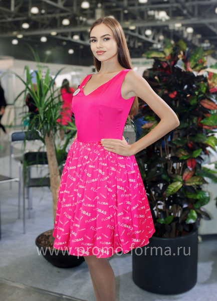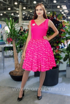 Цена высылается по запросу и зависит от количества изделий в партии.Яркое промо-платье в стиле pin-up: миди-силуэт с акцентом на талии и юбкой-солнце формирует женственный ретро-образ, близкий к винтажным костюмам 50-х. Насыщенный розовый оттенок фуксия выгодно выделяет промо команду и поддерживает фирменный стиль.